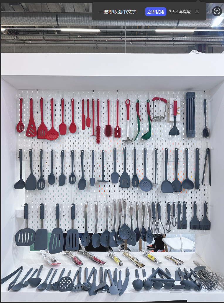 - Walls lined with our signature red, grey, and black silicone utensils, from spatulas to spoons, designed to make cooking a joy.